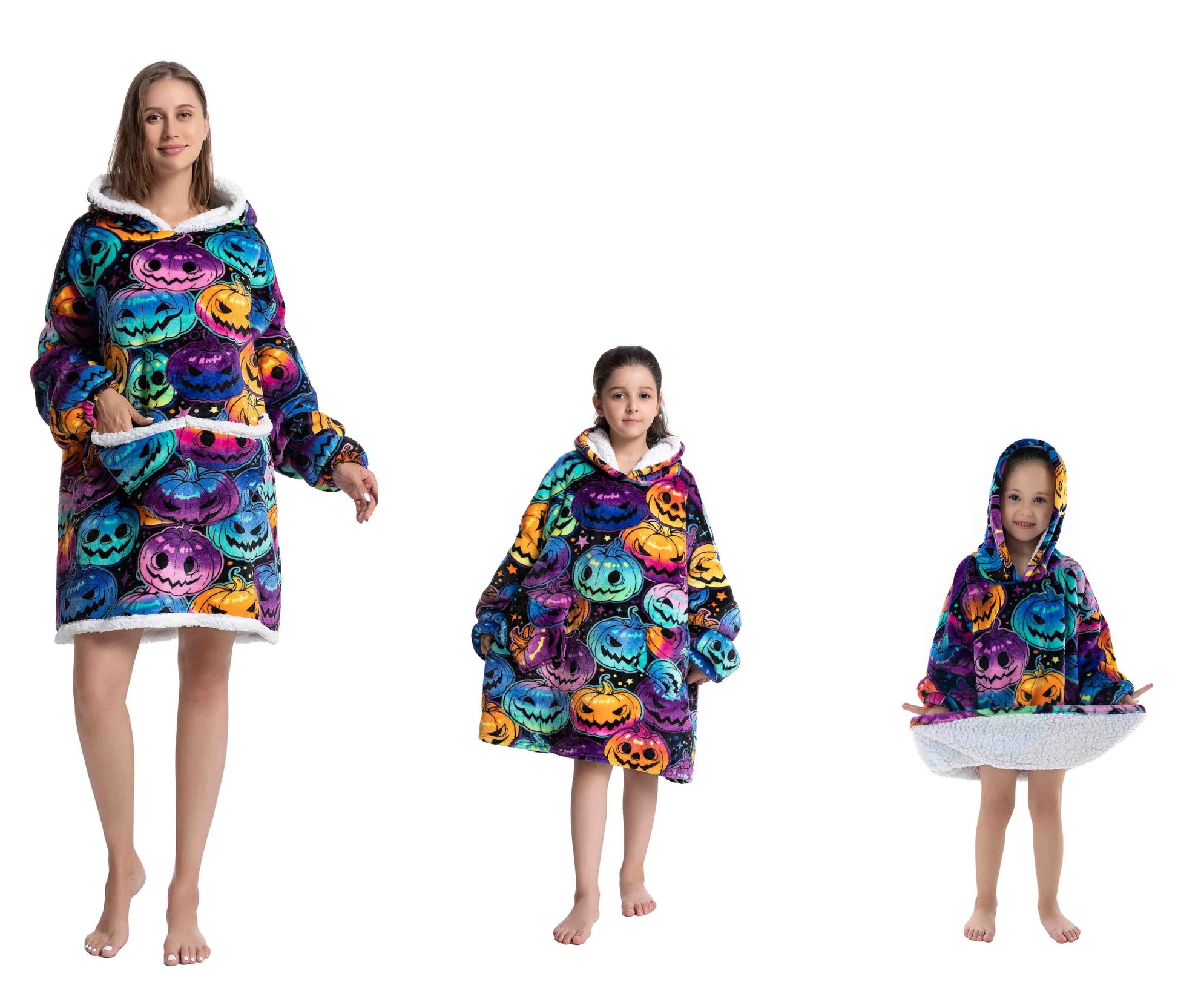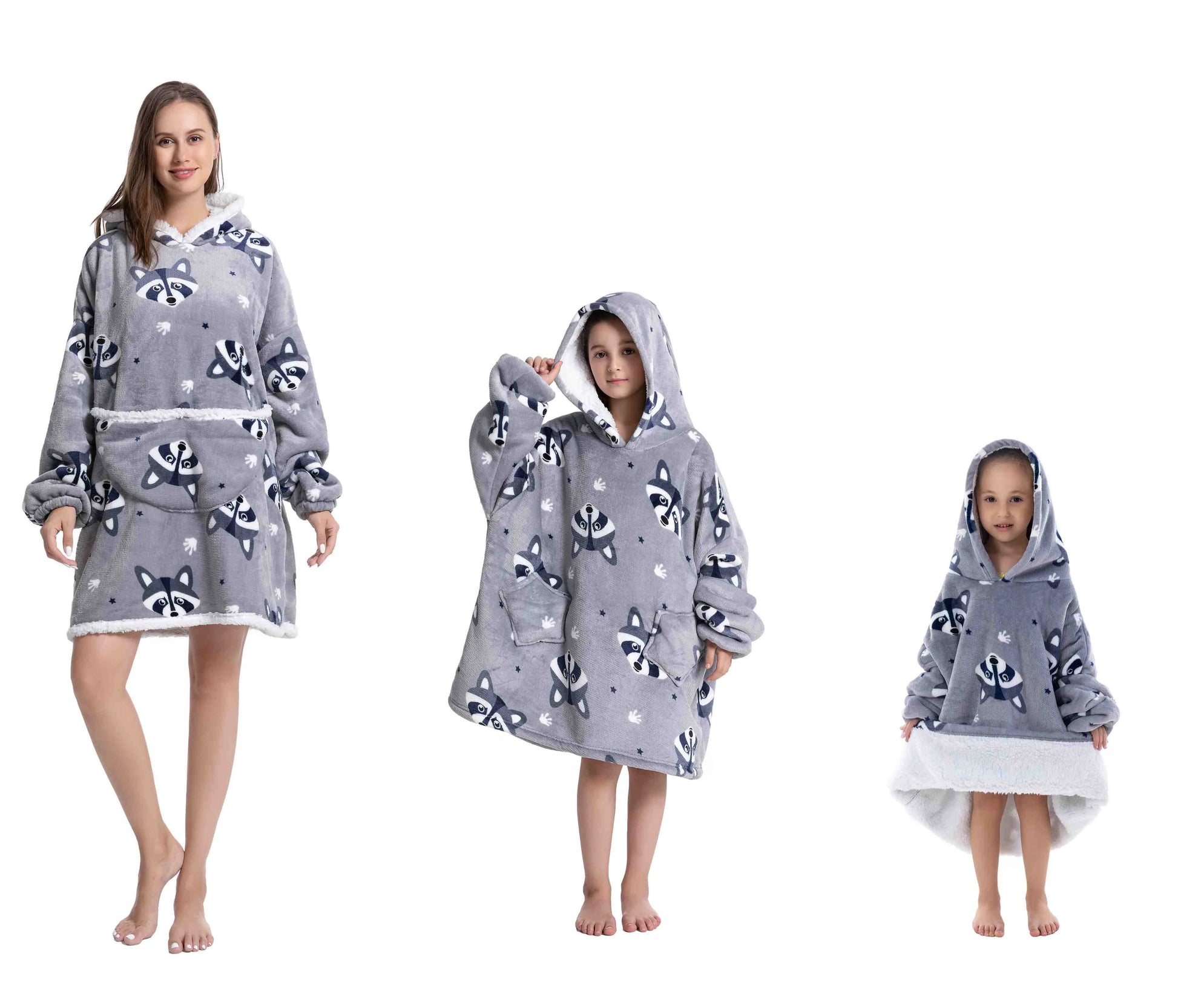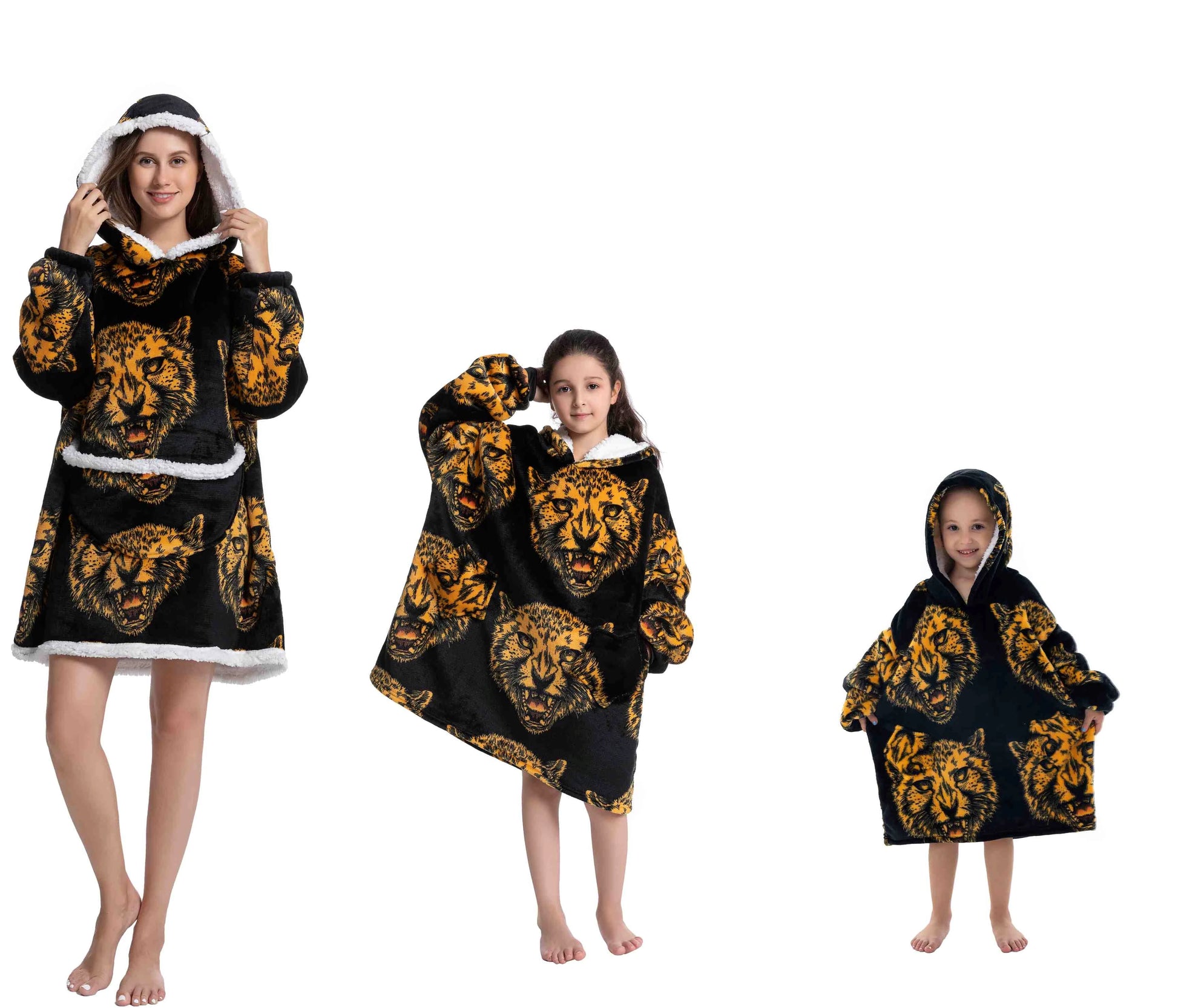Omhul jezelf in luxe en comfort met onze Oversized Wearable Hoodie! Perfect voor het hele gezin, van baby's tot volwassenen. Gemaakt van zacht flanel en luxe sherpa, ideaal voor koude winterdagen.