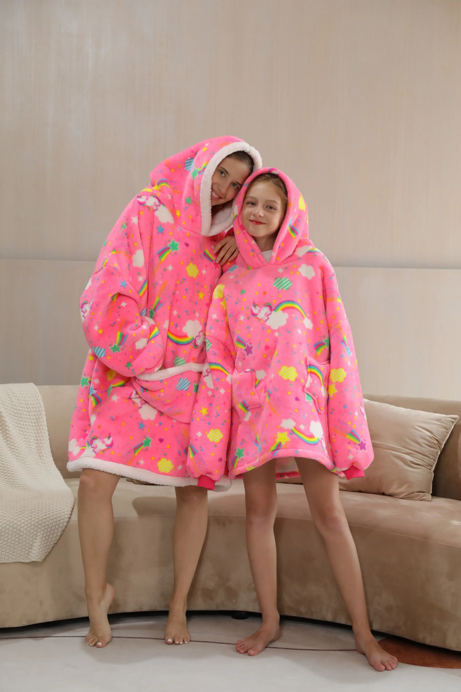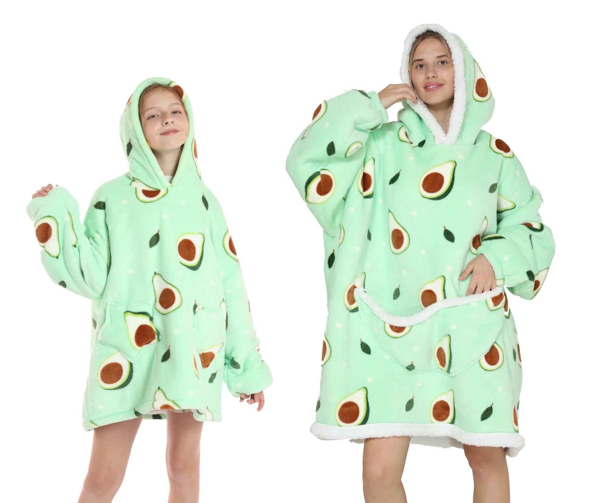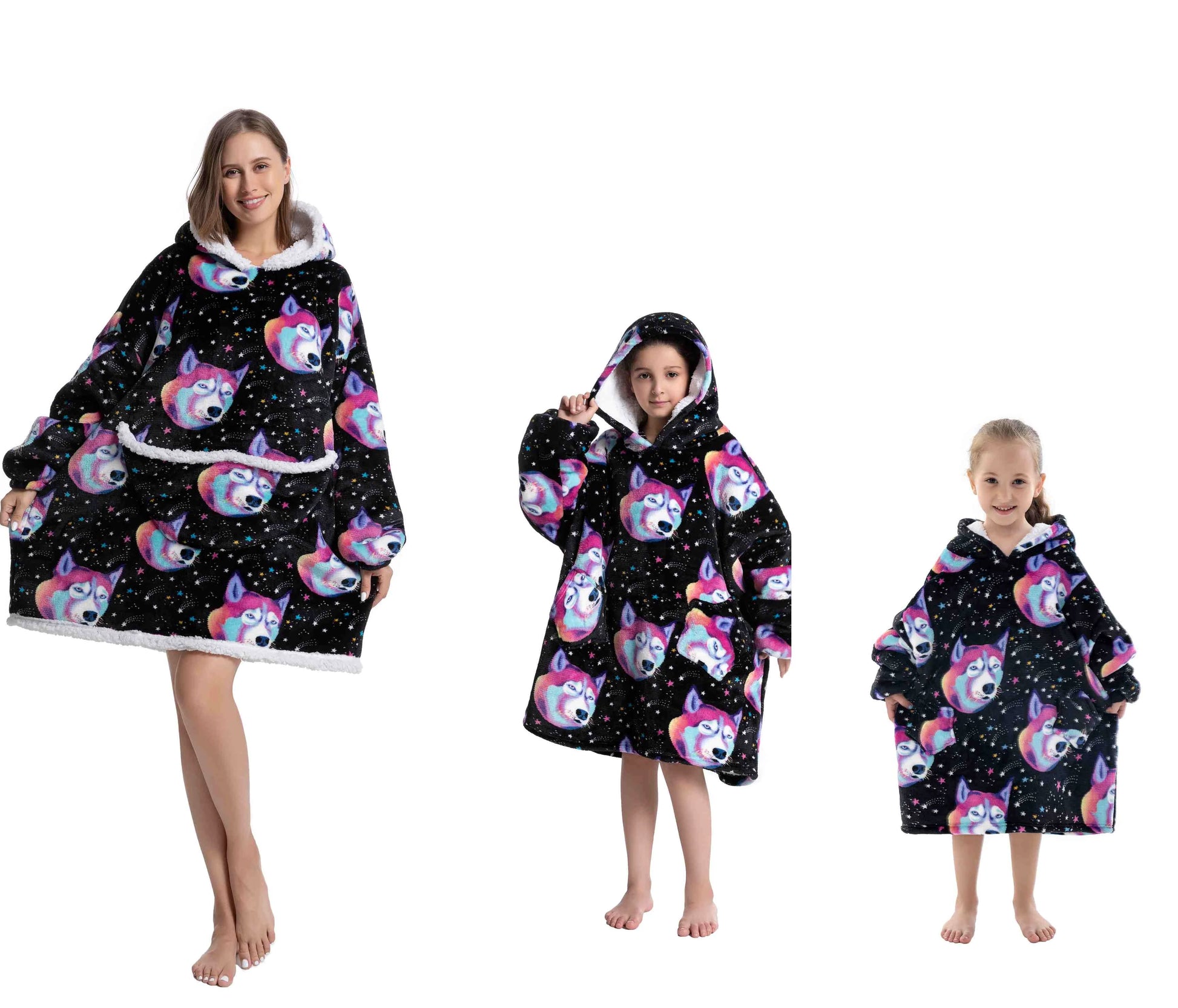 Omhul jezelf in luxe en comfort met onze Oversized Wearable Hoodie! Perfect voor het hele gezin, van baby's tot volwassenen. Gemaakt van zacht flanel en luxe sherpa, ideaal voor koude winterdagen.